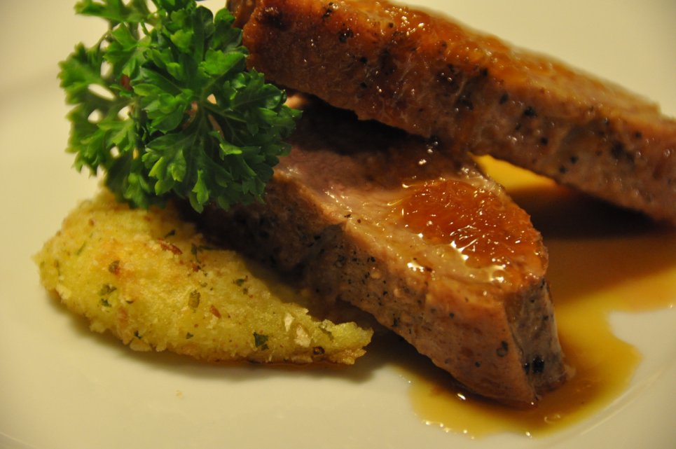 Orange Gastrique Duck with Potato Croquette