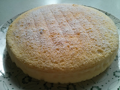 The cake turns out truly fluffy & light. It can be served warm or cold (after refrigerated for several hours). I personally prefer it cold, I feel that the taste has developed more. It's easy to make and pretty enough to be presented to guests (dust with icing sugar, top with fruit etc). The only problem is that the cake is so small, it's barely enough for the 2 of us ;)